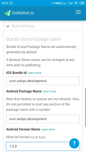 + iOS Webview Settings, digunakan untuk menjalankan aplikasi di perangkat iOS, disini saya menggunakan Use WKWebView.